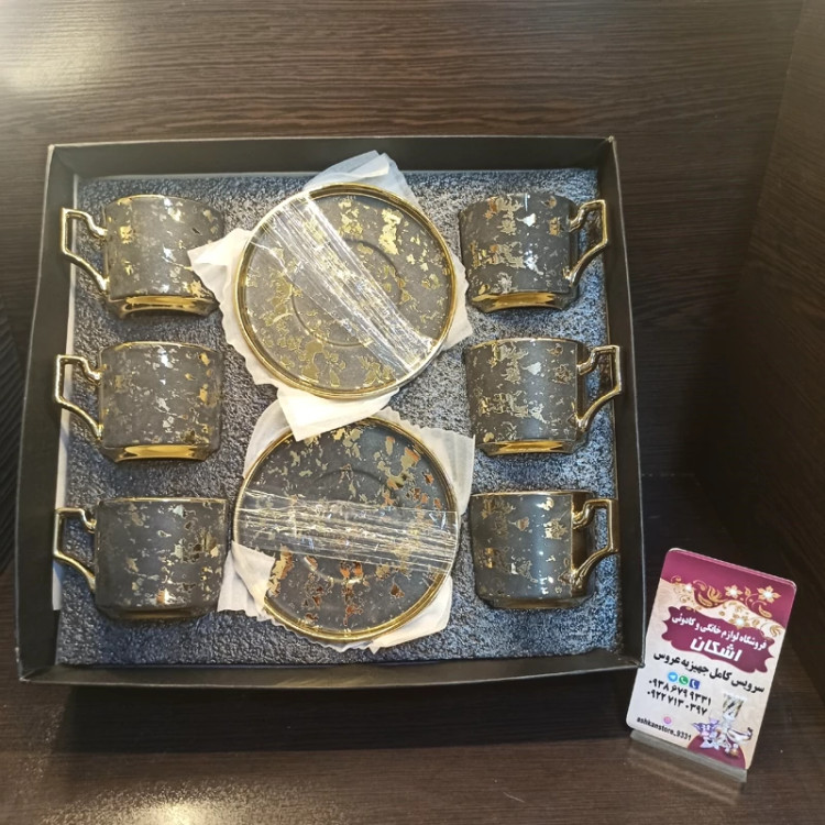 ست قهوه خوری ماربل مشکی طلایی چینی بلینا825ـ1