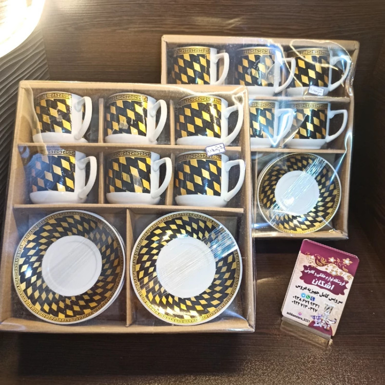 ست قهوه خوری طرح لوزی مشکی طلایی بلینا کد825-12